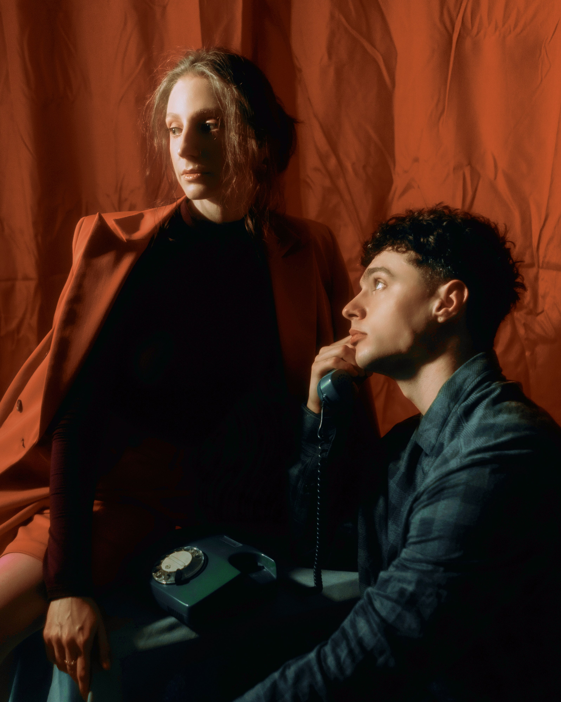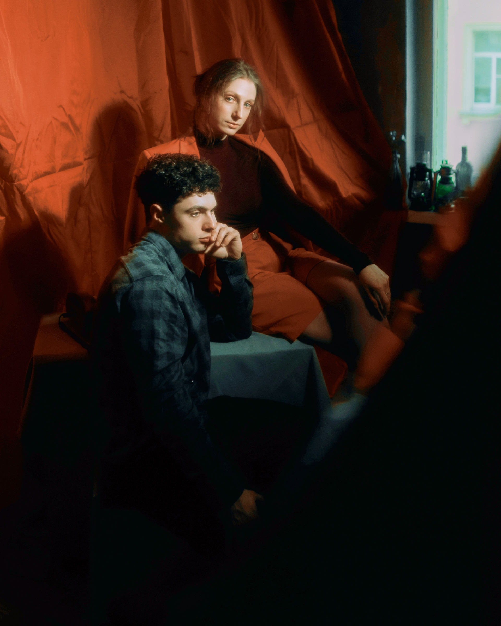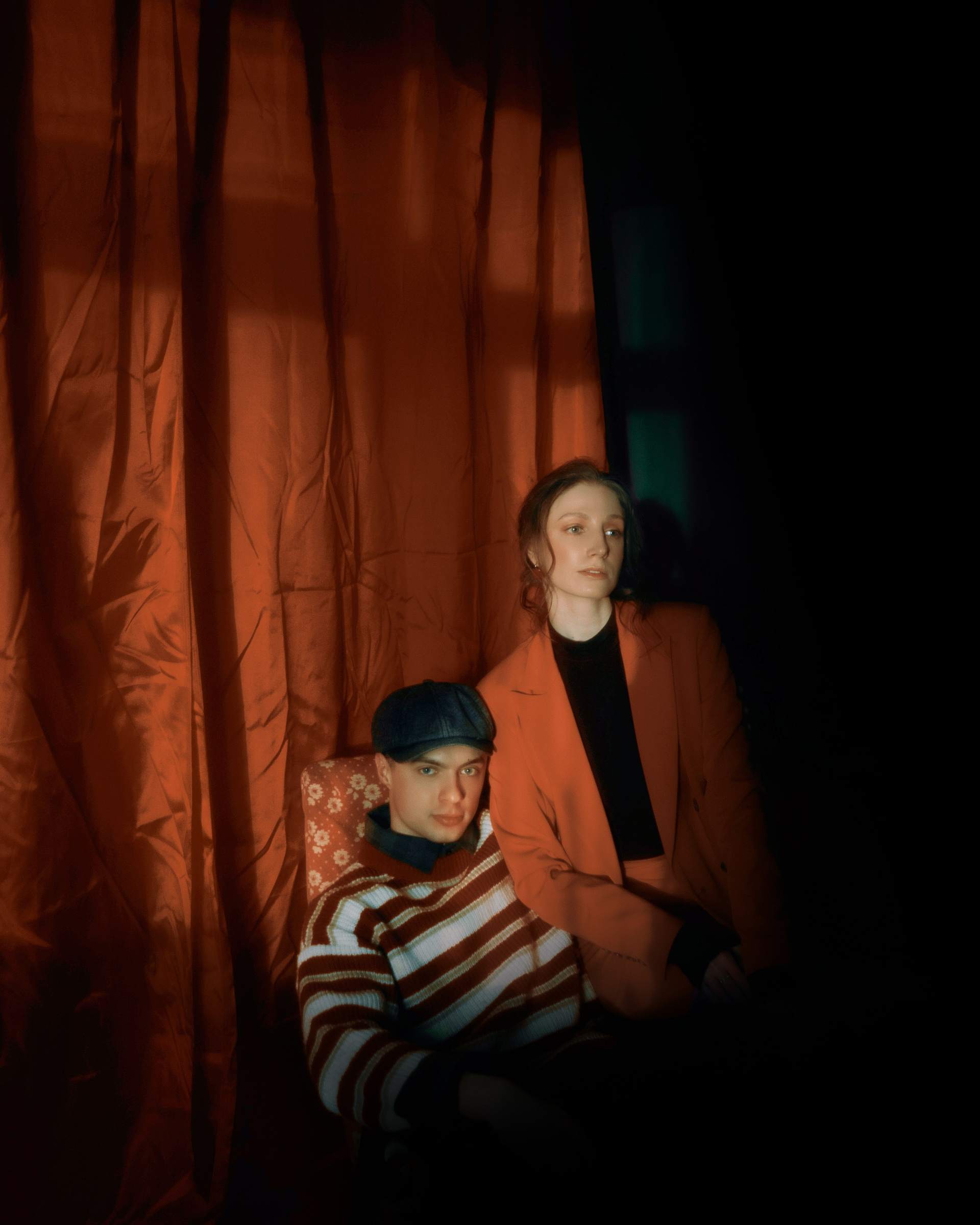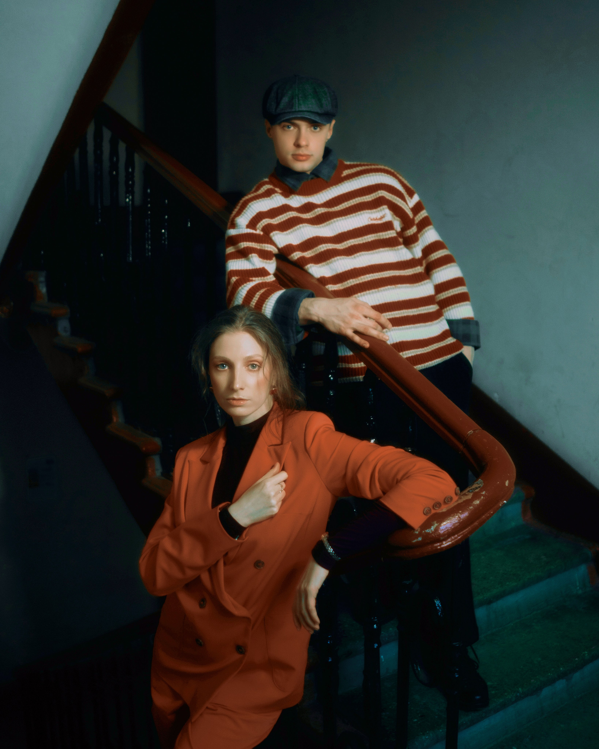 в этих кадрах мне было важно, чтобы настроение передавала каждая деталь. подобранные сочетания оттенков одежды. линии и диагонали, создающие близость. характерность взглядов. отсылки к киногероям прошлого. интимность света, приглашающая зрителя стать полноценным участником съемки.