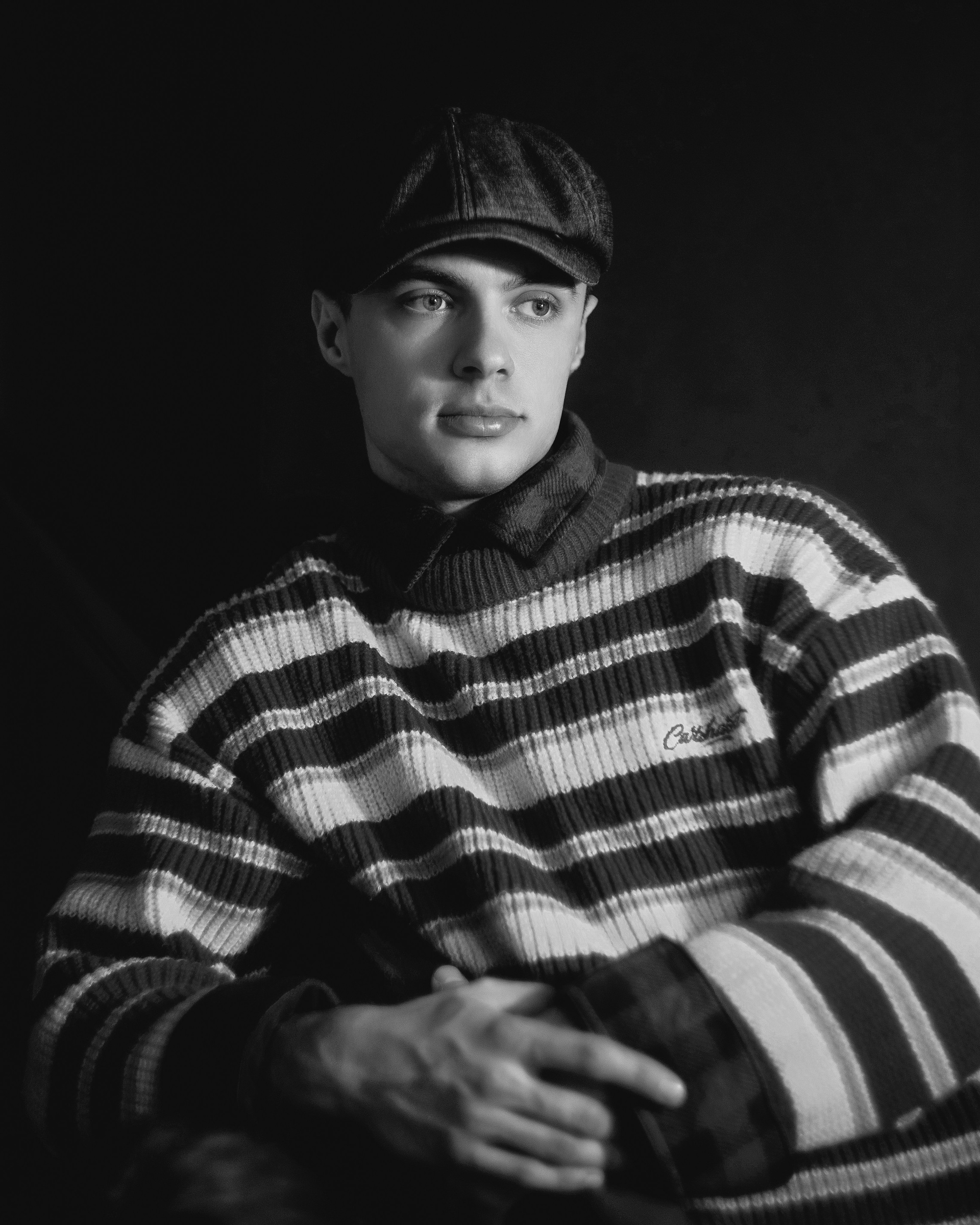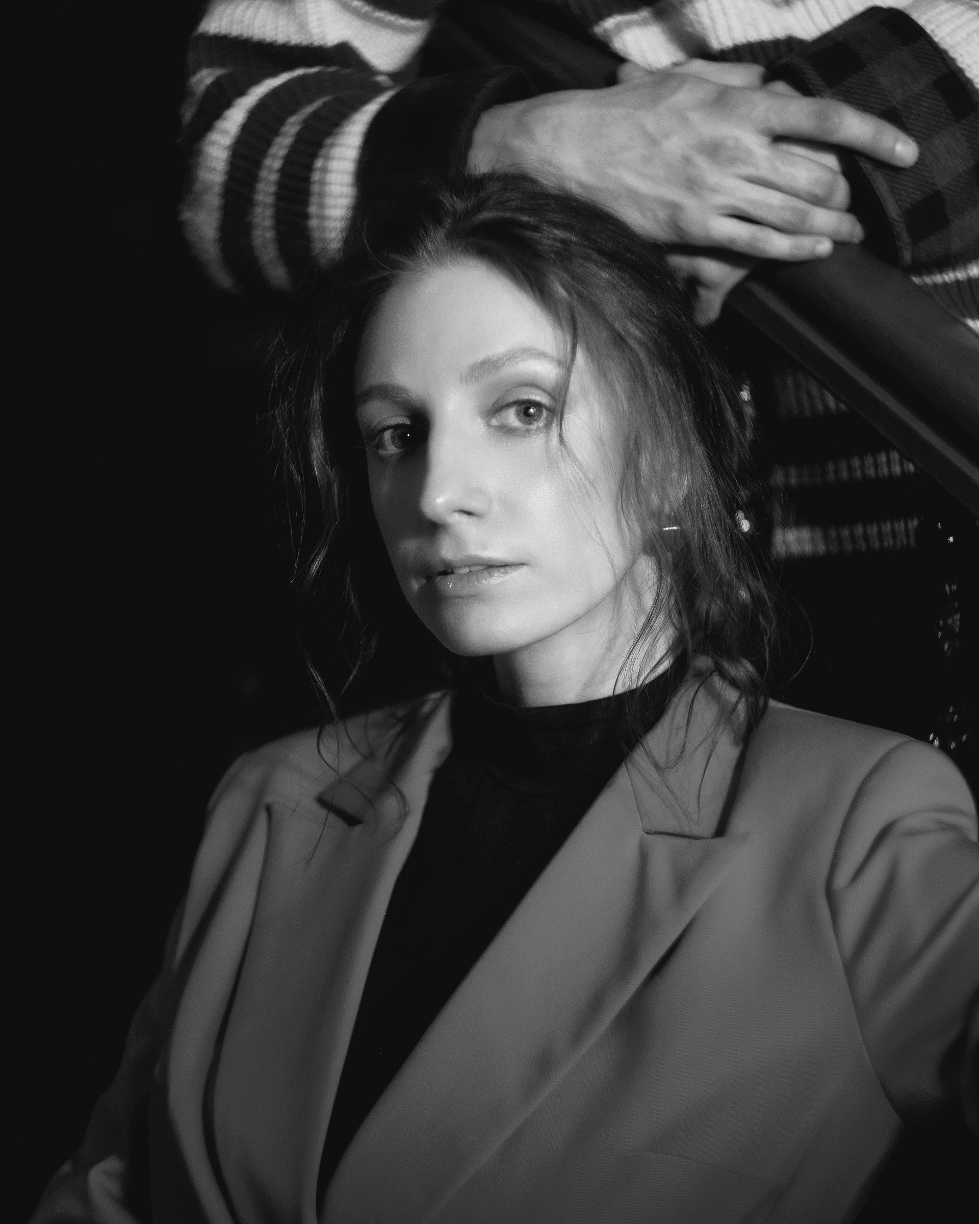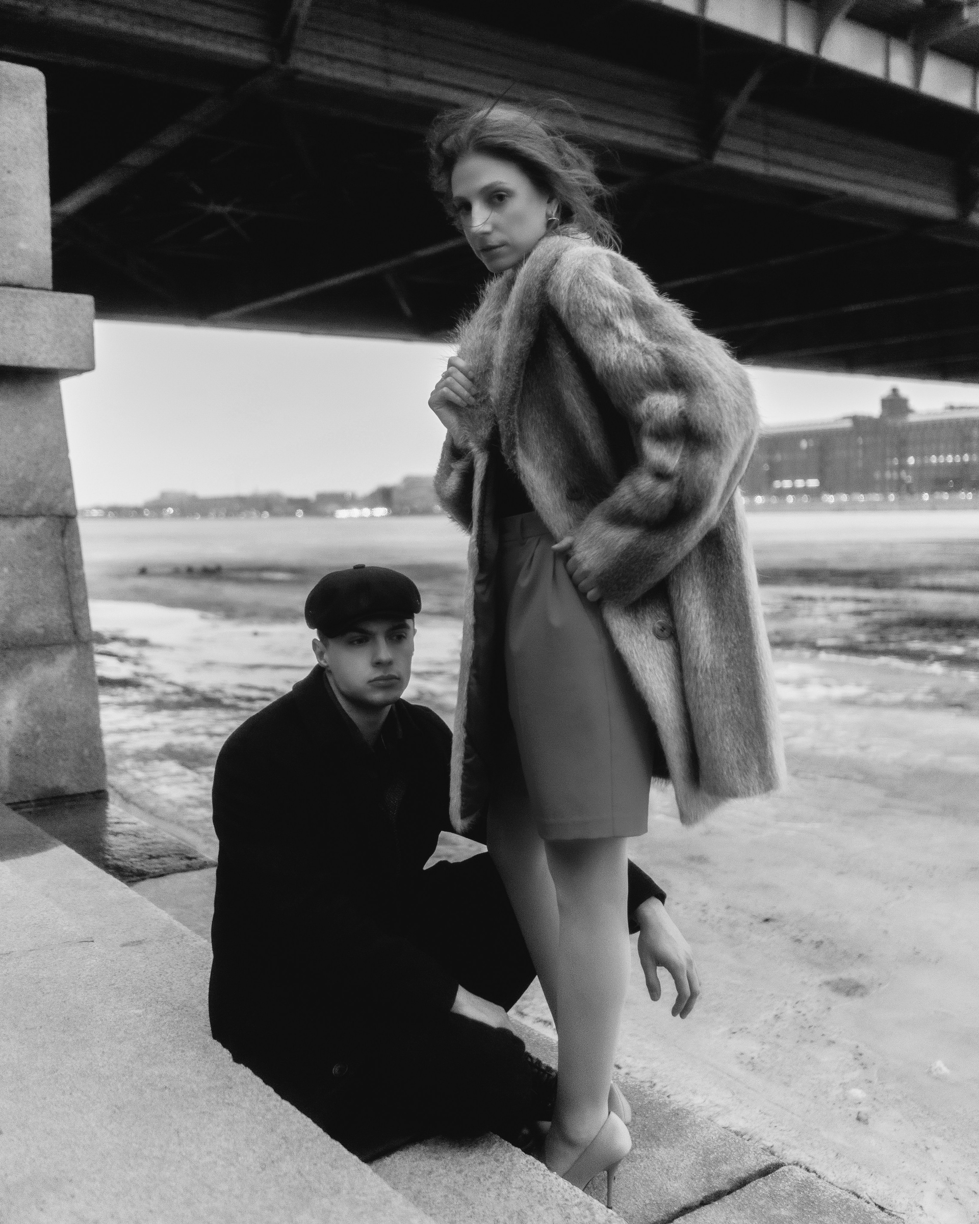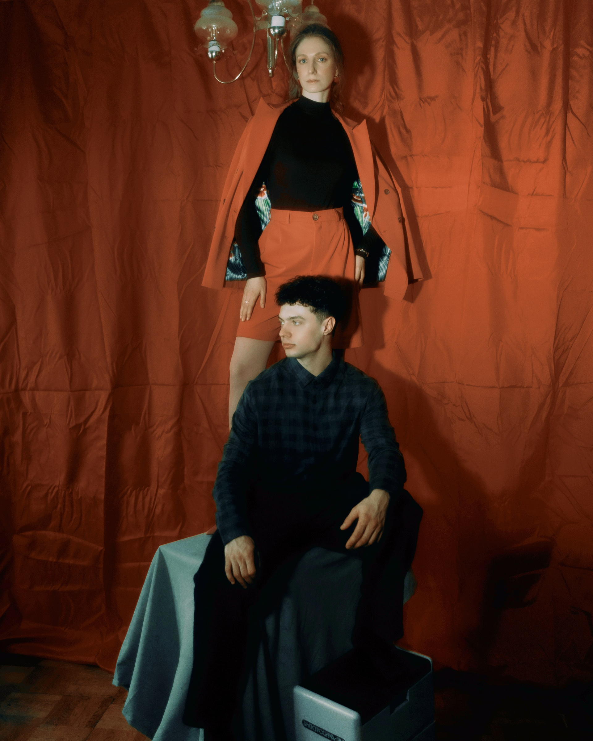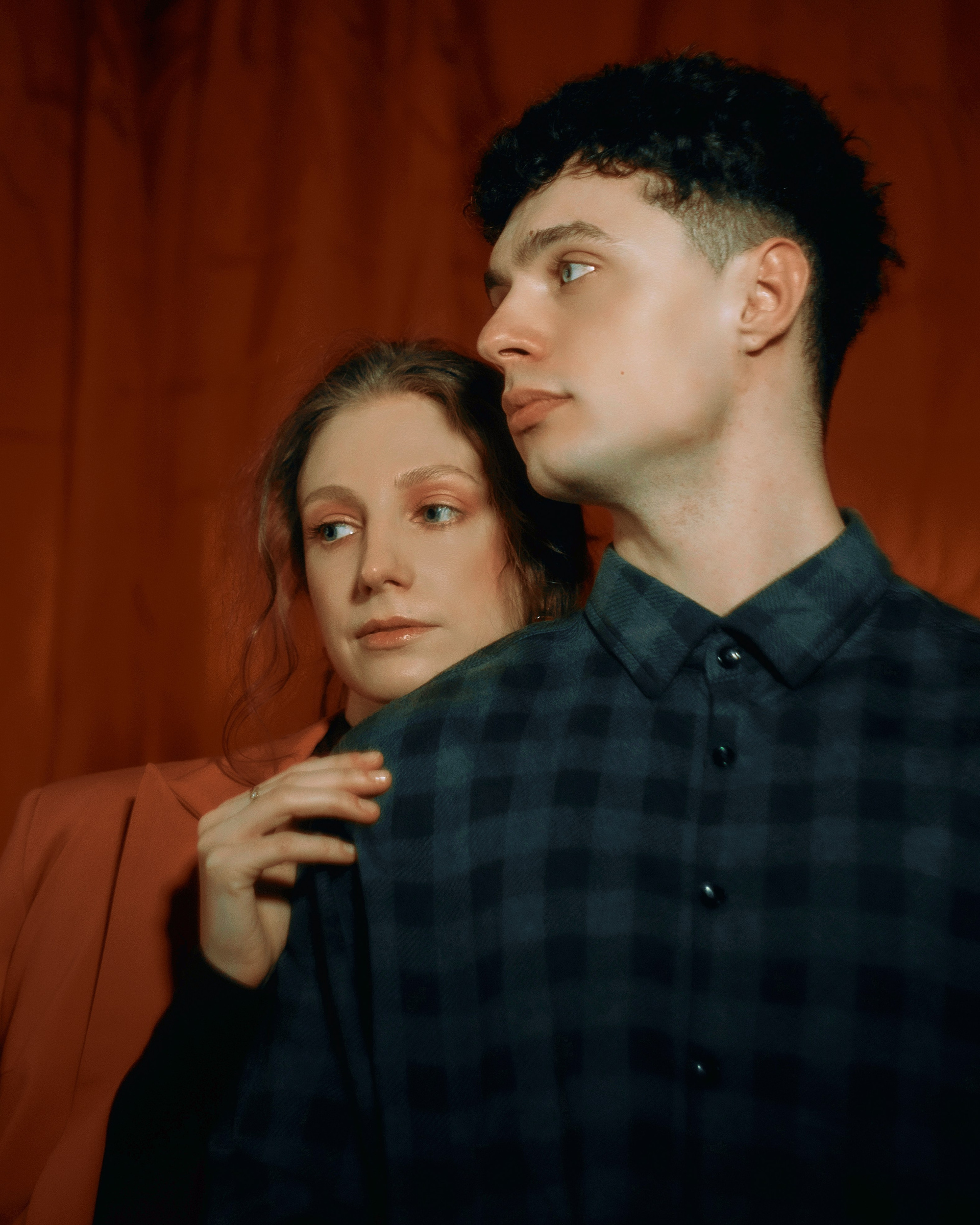 в этих кадрах мне было важно, чтобы настроение передавала каждая деталь. подобранные сочетания оттенков одежды. линии и диагонали, создающие близость. характерность взглядов. отсылки к киногероям прошлого. интимность света, приглашающая зрителя стать полноценным участником съемки.